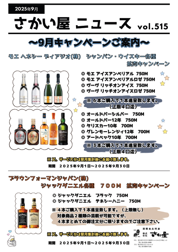 【NO515】さかい屋ニュース|モエ ヘネシー ディアジオ(株) シャンパン・ウイスキー各種拡売キャンペーン