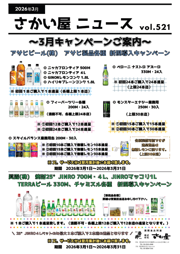 【NO521】さかい屋ニュース|アサヒビール(株) アサヒ製品各種 新規導入キャンペーン