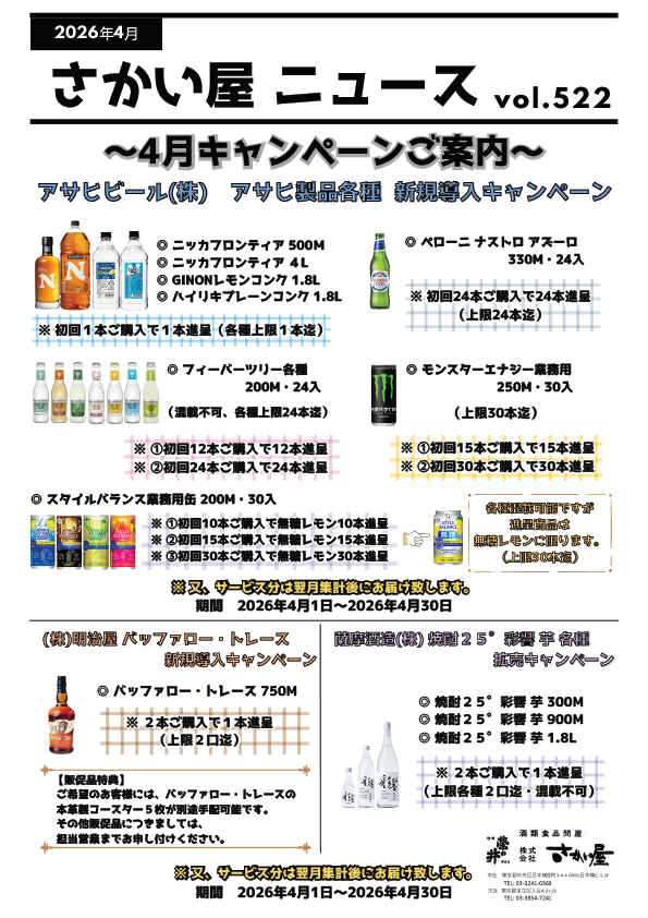 【NO522】さかい屋ニュース|アサヒビール(株) アサヒ製品各種 新規導入キャンペーン|入賞酒試飲商談会のご案内